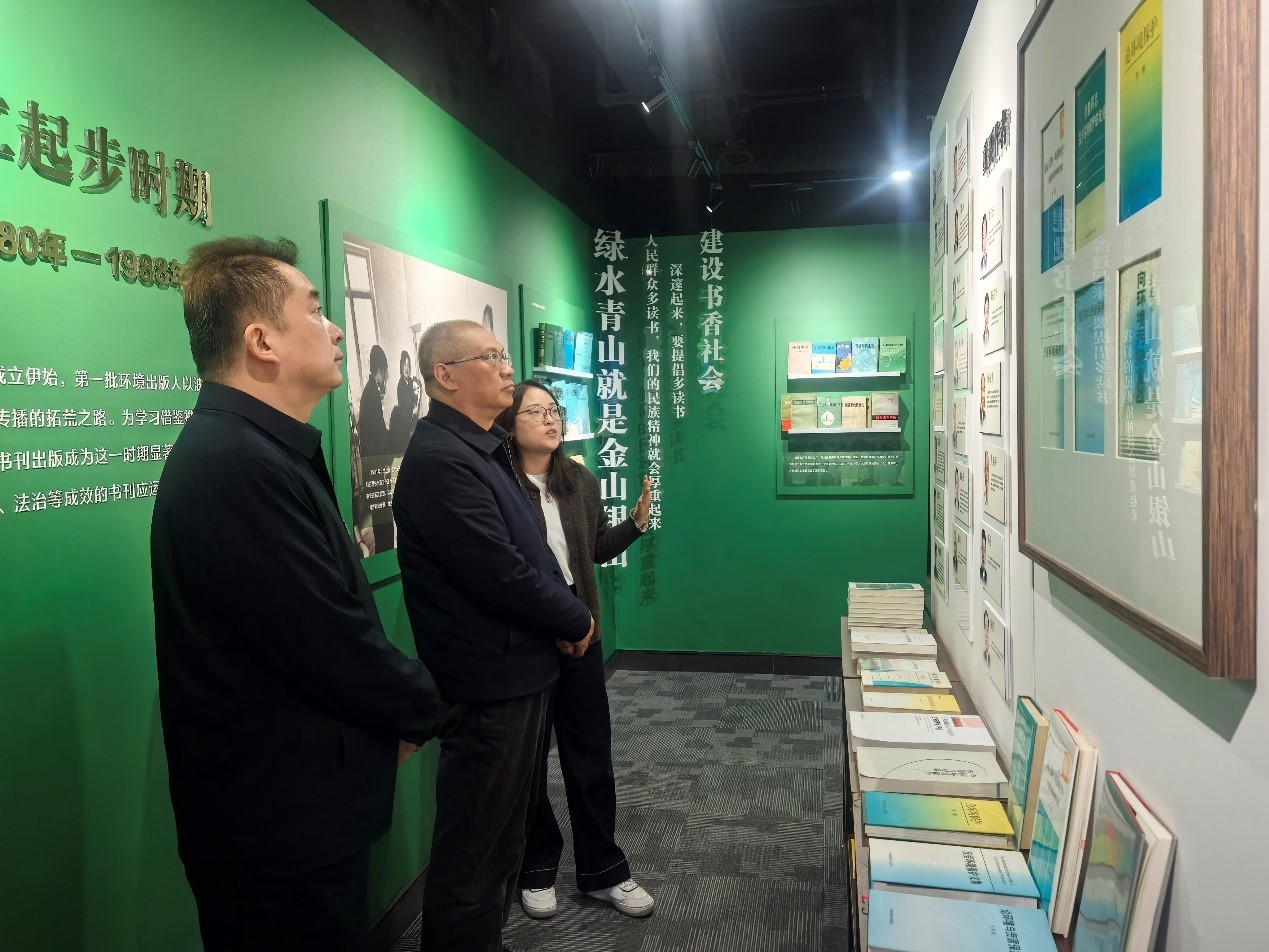 調(diào)研中,潘碧靈一行參觀了集團(tuán)版本室,詳細(xì)了解集團(tuán)發(fā)展歷程、精品圖書出版及融合出版實(shí)踐,對出版集團(tuán)作為生態(tài)環(huán)境部直屬專業(yè)出版機(jī)構(gòu),在宣傳國家環(huán)保方針政策、傳播環(huán)境科學(xué)知識、提升全民生態(tài)意識中發(fā)揮的重要作用給予肯定。
